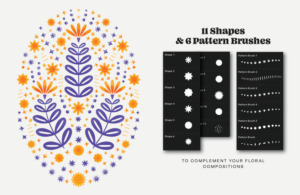 Floral Artistry Toolkit: 200+ Procreate Brushes & Stamps | Nature-inspired Designs, Patterns, Botanical Elements - For Floral Artistry