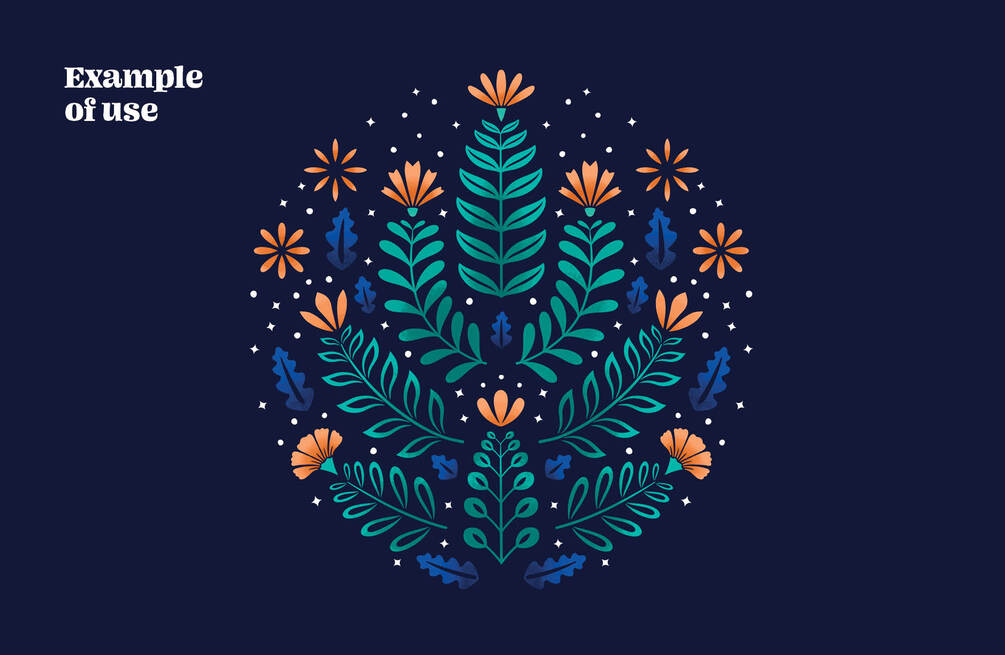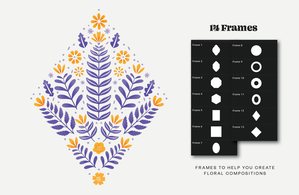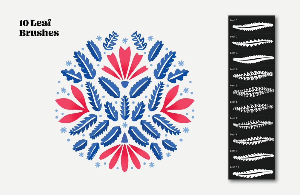 - 71 Flower Stamps - 80 Plant brushes - 10 Leaf Brushes - 14 frames - 8 texture Brushes - 11 Shape stamps - 6 pattern brushes - 1 mono brush