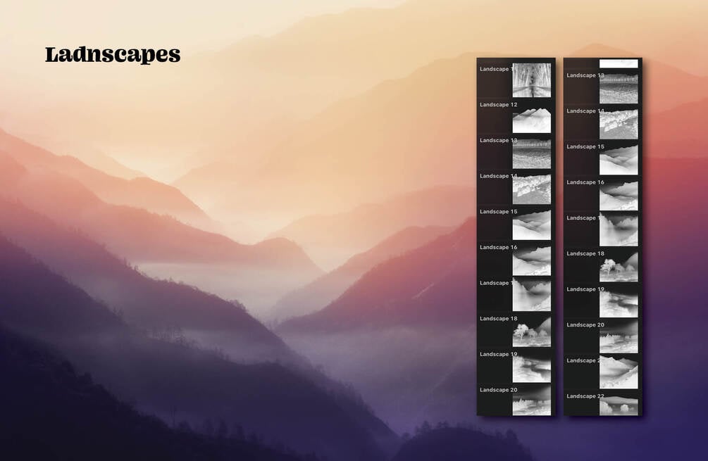 To complement your double exposure creations, you can choose from 38 plant stamps that offer a diverse selection of flora, combined with 22 landscape stamps.