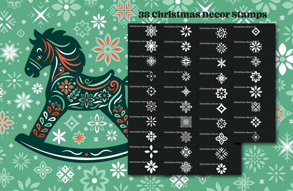Holiday Folk Christmas Procreate Brushes & Stamps - Digital Art Tools for Festive Illustrations and Patterns